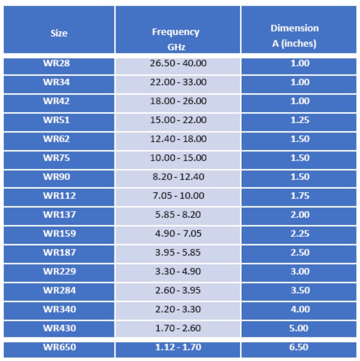 UBS offers a standard product line of precision rectangular waveguide-to-coax end launch adapters covering waveguide sizes fromWR-22 throughWR-650.