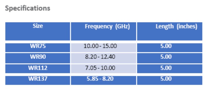 These Arc etectors operate over the full waveguide bandwidths and are available forWR28 toWR650 waveguide sizes.